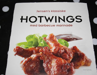 På tal om mat och middag så vart vi riktigt lata i söndags. Hade veckohandlat och hittade i köttdisken Jensens Hot wings, som vi vart tvungna att testa. I ett tråg låg ett gäng chicken wings och en påse marinad att pensla på innan den skulle in i ugnen.